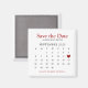 Help your guests remember your special day with this elegant heart-themed calendar "Save the Date" magnet. The design features a beautifully integrated monthly calendar, ensuring your wedding date stands out while keeping the details organized and clear. Personalized with the couple's names and wedding location, this practical yet stylish magnet adds a romantic touch to any fridge. The timeless heart motif and clean typography make it perfect for couples who want a classic yet functional keepsake.