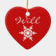"Will You Marry Me?" Decorations for a Christmas marriage proposal. This heart shaped ornament contains it's own unique snowflake and the word "Will" and is one of the ornaments that make up our series of 5 Christmas marriage proposal decorations. The first ornament has her/his customized name and a unique snowflake pattern. The remaining 4 each contain one of the words in the phrase "Will you marry me? along with a different snowflake illustration. Secretly hang them on the tree or place them in a gift box to be opened Christmas morning--it's the magic of Christmas come to life! What better way to ask for your loved one's hand in marriage than with this perfect Christmas proposal decoration and gift! The whole series will become a cherished keepsake for years to come.