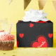 Cute Valentine's day love heart with custom name pattern.Elegant personalized wrapping paper with red hearts on black background