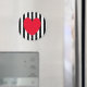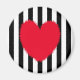 Red heart on black and white striped background