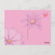 A postcard with a red heart on a pink background. On the back, which also has a pink background, there are also Cosmea flowers and a small pink heart. These elements are slightly opaque. A postcard for your loved ones!