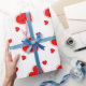 Cute Valentine's day love heart with custom name pattern. Elegant personalized wrapping paper with red hearts on white background.