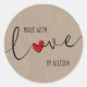 Red Heart Script Hand Lettered Made With Love Classic Round Sticker