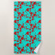 Red Heart Shapes Pattern in Vivid Turquoise Beach Towel