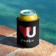 Give your girlfriend or boyfriend this can cooler for Valentine's day or any special occasion and they will love you for it. This modern design features a red heart and the letter "U" in white typography with a name for you to personalize. Designed by world renowned artist ©Tim Coffey.