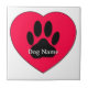 Cute red heart with dog paw print. Custom ceramic tiles. Edit name to customize.