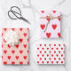 Red Hearts Abstract Hand Drawn Boho Style Pattern Wrapping Paper Sheet