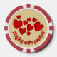 A brilliant set of poker chips featuring red hearts and the template text "playing with passion". If you like you can easily change the text to something else.