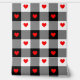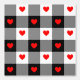 Cute red hearts in a black and white plaid pattern.