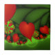 Red Hearts Lime Green Modern Abstract Fractal Art Tile