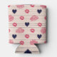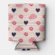 Red hearts, lips, daisies pattern. can cooler