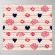 Playful pattern with red hearts, lips, and daisies. Sweet, Romantic, Youthful, Expressive.