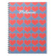 Red craft style hearts with stitch effect on blue background. Spiral Notebook with optional text.