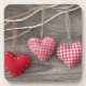 Red Hearts on Wooden Table Coaster