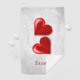 Personalize a unique towel for golfing with a Red Hearts Personalized Golf Towel. Towel design features a a pair of hearts, a soft white leafy vine against a light grey grunge background with an area to personalize with your name. Additional gift items available with this design as well as a variety of colours.
