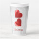 Enjoy your latte or morning coffee with a Red Hearts Personalized Latte Mug. Mug design features a a pair of hearts, a soft white leafy vine against a light grey grunge background with an area to personalize with your name. Additional gift items available with this design as well as a variety of colours.