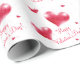 Happy Valentine's Day wrapping paper with red glittery hearts over white background. This lovely gift wrap is fully customizable. You can add your own text, change the background colour, resize or remove the objects.