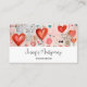 Business cards with a fun mixed media style pattern. Big red hearts and various random shapes scattered around making a delightfully cute pattern.