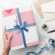 This is a great roll of wrapping paper. It's good for many occasions and can be used for him or hers gifts. I was looking for a gender neutral paper that I could use in my shop that also incorporated the color pink like our logo without it being too feminine. I believe we achieved that with this wrapping paper. The paper quality it excellent and we look forward to continuing with this design for years to come. Perfect, no printing streaks or lines like i have seen in some of the other papers I've ordered.