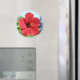 Hibiscus are my favourite flowers because they remind me of all that's tropical. Every time I see one, I can't help but think of white sand between my toes, the sound of the tide coming in and the taste of a margarita as the palm trees sway above. There's no place I would rather be. Now you can have a little bit of the tropics on your fridge or locker or wherever you put this bright magnet. (Just don't put it on your computer, LOL. You'll have to settle for a desktop background there.)