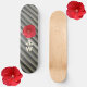 A bold red Hibiscus flower on a stylish sophisticated skateboard with modern monochromatic stripes in smokey shades of grey personalized with Initial(s).