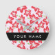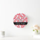 Red Hibiscus, Red Flowers, Your Name Round Clock