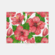 Red hibiscus flowers painted with watercolors, pattern made in Illustrator.