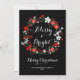 Red Holiday Floral Wreath Merry & Bright Christmas Card