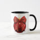 Cute red round holiday ornament with bow appears on this coffee mug you can customize.