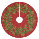 Red Holly Berries Green Pine Tree Needles Motif Brushed Polyester Tree Skirt