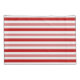 Red stripes of varying thickness on bright white look have a classic breezy style.