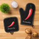 Red hot chili pepper drawing personalized kitchen oven mitt & pot holder set