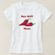 Two bright red hot peppers on the front of this T shirt, with the words "Red HOT Mama". Text is customizable.