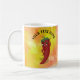 A red and hot pepper cartoon character. Custom coffee mugs.