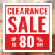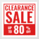 Huge clearance sale store window cling in red and white for a retail shop or any business. Featuring modern bold typography to attract potential customers. The example is 40x40 inches but you can choose any size you need.