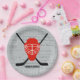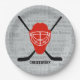 Red Ice Hockey Helmet and Sticks Typography Paper Plate