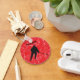 Design: Red ice background + silhouette of hockey player in black + Personalization with the name of the friend or family member
