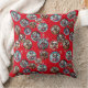 Red illustrative snowflake and dogs Santa gift Throw Pillow