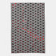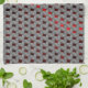 Red image under gray plates, rectangular shapes kitchen towel