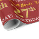 This wrapping paper design features a message like "First-Name’s 27th BIRTHDAY!", with the "27th" having a faux/imitation gold-like colour appearance. The name can be personalized, and the background is coloured red. It could perhaps be used when wrapping gifts being given for somebody’s twenty seventh birthday. [~Z0000178]
