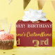 This wrapping paper design features a message like "CustomName’s 3rd BIRTHDAY!", with the "3rd" having a faux/imitation gold-like colour appearance. The name can be customized, and the background is coloured red. It could perhaps be used when wrapping gifts being given for somebody’s third birthday. [~Z0000178]