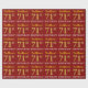 This wrapping paper design features a message like "FirstName’s 71st BIRTHDAY!", with the "71st" having a faux/imitation gold-like colour appearance. The name can be personalized, and the background is coloured red. It could perhaps be used when wrapping gifts being given for somebody’s seventy first birthday. [~Z0000178]