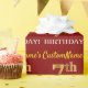 This wrapping paper design features a message like "CustomName’s 7th BIRTHDAY!", with the "7th" having a faux/imitation gold-like colour appearance. The name can be personalized, and the background is coloured red. It could perhaps be used when wrapping gifts being given for somebody’s seventh birthday. [~Z0000178]