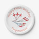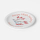 Customizable Red Jet Planes party plate. Nine red aerobatic planes fly through the air in celebration with red, white and blue trails!
