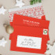 This festive red envelope features a white area for hand-writing or mail merge printing addresses on the front, convenient pre-printed return address text on the back flap and a charming pattern of Swedish dala horses and modern folk art printed as a liner making this envelope the perfect final touch to the Swedish Dala Horse holiday card collection.