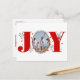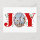 Red Joy with berries Christmas photo Holiday Postcard. It showcases the word "JOY" with red berries and greenery while instead of the letter "O" there is your photo.