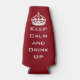 Hold that bottle or can in style with this whimsical Keep Calm cooler. Done in red, with a white crown and white bold text reading Keep Calm And Drink Up and a name on the backside of the bottle cooler. Personalize the name and any of the other text to read what you want.