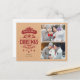 Customisable Holiday Greeting Cards. This design features space for two photos and a festive red Christmas message on a Kraft card background. Personalise this design with a photo of your family. Use the design tools to edit the text.