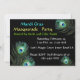 RED LADY AND JESTER MASK WITH PEACOCK FEATHERS INVITATION