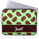 Red ladybugs on green laptop sleeve